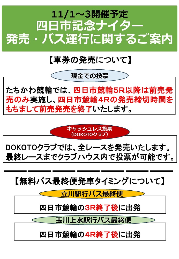 Informationニュース Home お知らせ・イベント:ニュース一覧 11月1日~3日 四日市記念ナイター発売・バス運行に関するご案内 Xでポスト Facebookでシェア 2025年10月30日 (木) アーカイブ 2025年10月 2025年9月 2025年8月 2025年7月 2025年6月 2025年5月 2025年4月 2025年3月 2025年2月 2025年1月 2024年12月 2024年11月 2024年10月 2024年9月 2024年8月 2024年7月 2024年6月 2024年5月 2024年4月 2024年3月 2024年2月 2024年1月 2023年12月 2023年11月 2023年10月 2023年9月 2023年8月 2023年7月 2023年6月 2023年5月 2023年4月 2023年3月 2023年2月 2023年1月 2022年12月 2022年11月 2022年10月 2022年9月 2022年8月 2022年7月 2022年6月 2022年5月 2022年4月 2022年3月 2022年2月 2022年1月 2021年12月 2021年11月 2021年10月 2021年9月 2021年8月 2021年7月 2021年6月 2021年5月 2021年4月 2021年3月 2021年2月 2021年1月 2020年12月