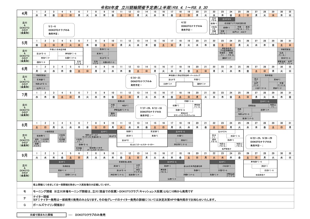Informationニュース Home お知らせ・イベント:ニュース一覧 令和8年度上半期 たちかわ競輪・DOKOTOクラブ発売スケジュール Xでポスト Facebookでシェア 2026年3月 2日 (月) アーカイブ 2026年3月 2026年2月 2026年1月 2025年12月 2025年11月 2025年10月 2025年9月 2025年8月 2025年7月 2025年6月 2025年5月 2025年4月 2025年3月 2025年2月 2025年1月 2024年12月 2024年11月 2024年10月 2024年9月 2024年8月 2024年7月 2024年6月 2024年5月 2024年4月 2024年3月 2024年2月 2024年1月 2023年12月 2023年11月 2023年10月 2023年9月 2023年8月 2023年7月 2023年6月 2023年5月 2023年4月 2023年3月 2023年2月 2023年1月 2022年12月 2022年11月 2022年10月 2022年9月 2022年8月 2022年7月 2022年6月 2022年5月 2022年4月 2022年3月 2022年2月 2022年1月 2021年12月 2021年11月 2021年10月 2021年9月 2021年8月 2021年7月 2021年6月 2021年5月 2021年4月 2021年3月 2021年2月 2021年1月 2020年12月